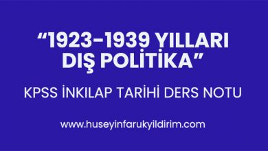 İnkılap Tarihi KPSS ders notlarının son bölümde 1923-1939 Yılları Arası Dış Politika konusu ile İnkılap tarihi notlarımızı bitiriyoruz. Konumuzu 1923-1930 Yılları…